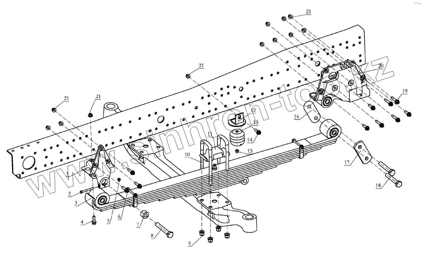 Каталог запасных частей к технике: Shaanxi Shacman SX4256NT324. FRONT SUSPENSION (DC95259690702)