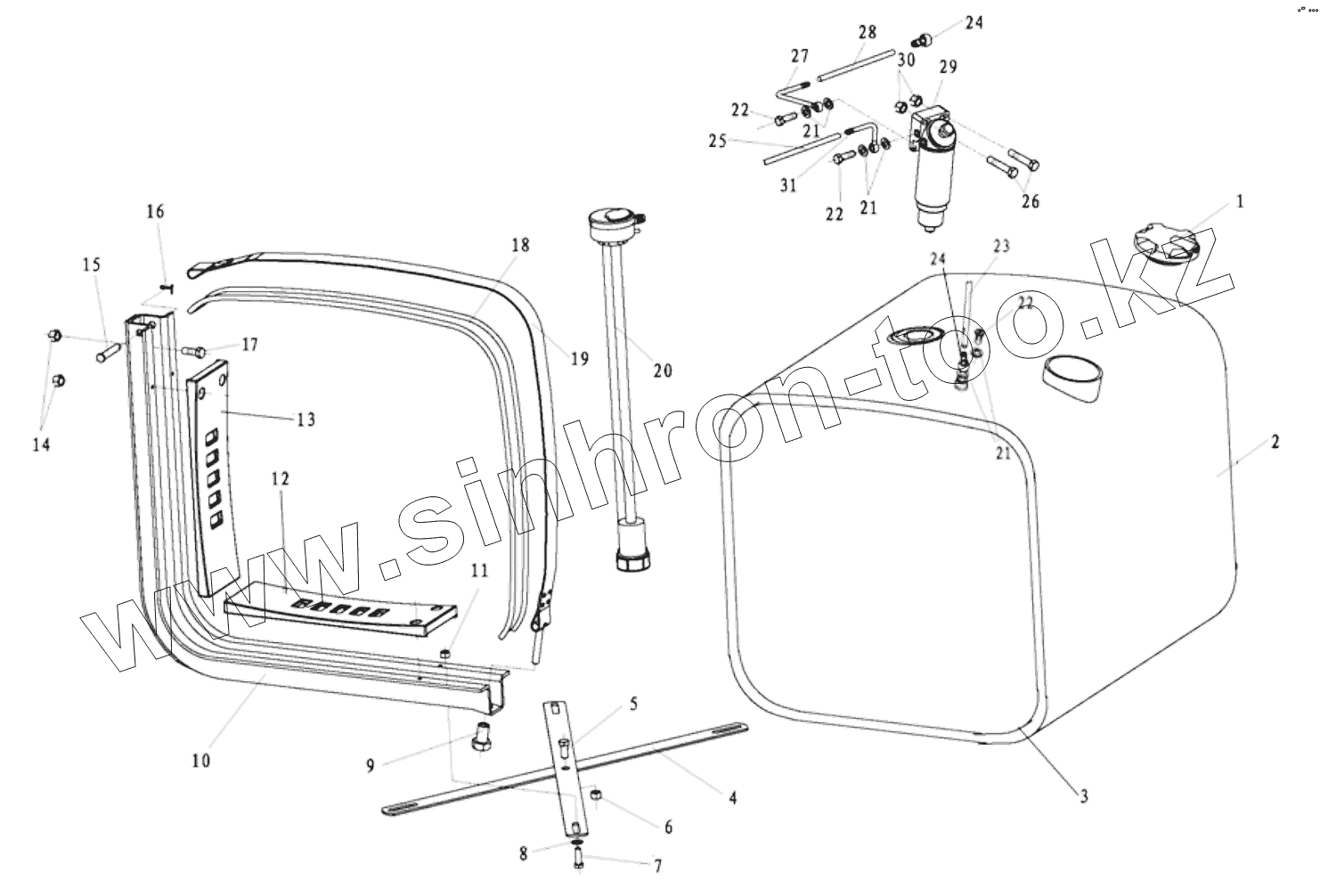 Каталог запасных частей к технике: Shaanxi Shacman SX4256NT324. FUEL TANK ASSEMBLY