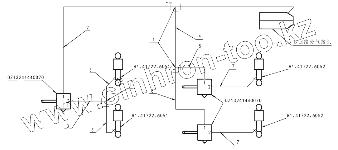 Каталог запасных частей к технике: Shaanxi Shacman SX42584V324. AIR SPRING CONTROL PIPELINE DEVICE