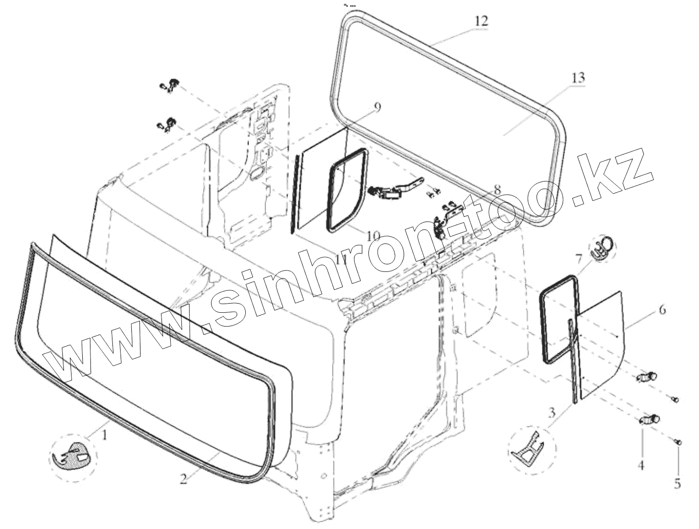 Каталог запасных частей к технике: Shaanxi Shacman SX42584V324. CAR WINDOW