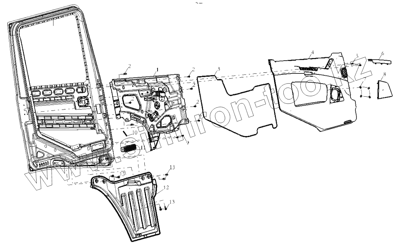 Каталог запасных частей к технике: Shaanxi Shacman SX42584V324. DOOR COVERING LEFT (ELECTROMOTION)