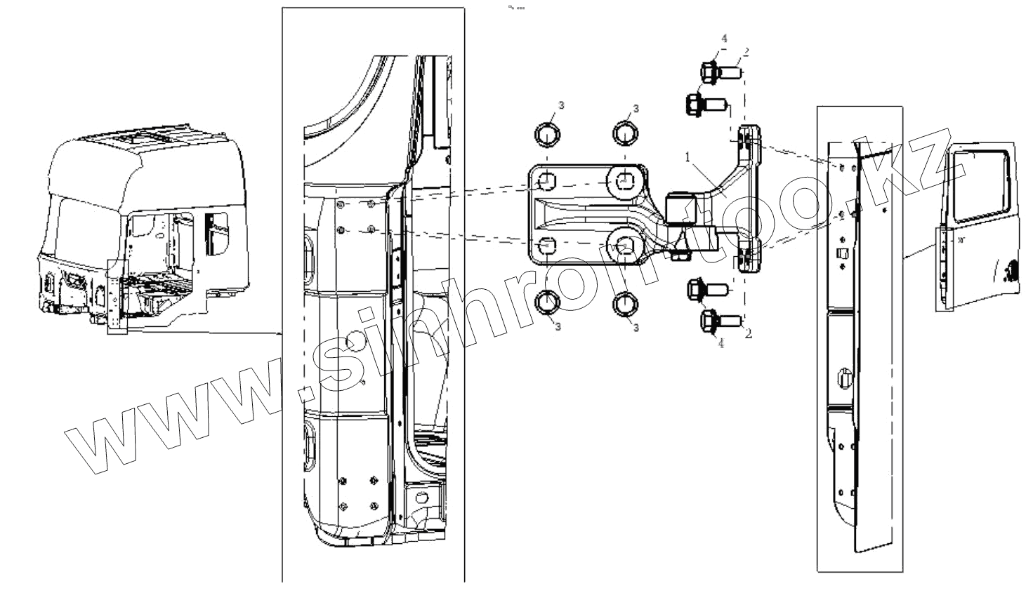 Каталог запасных частей к технике: Shaanxi Shacman SX42584V324. DOOR HINGE LEFT