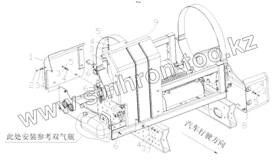 Каталог запасных частей к технике: Shaanxi Shacman SX42584V324. LNG SYSTEM SHIELD (SINGLE BOTTLE)