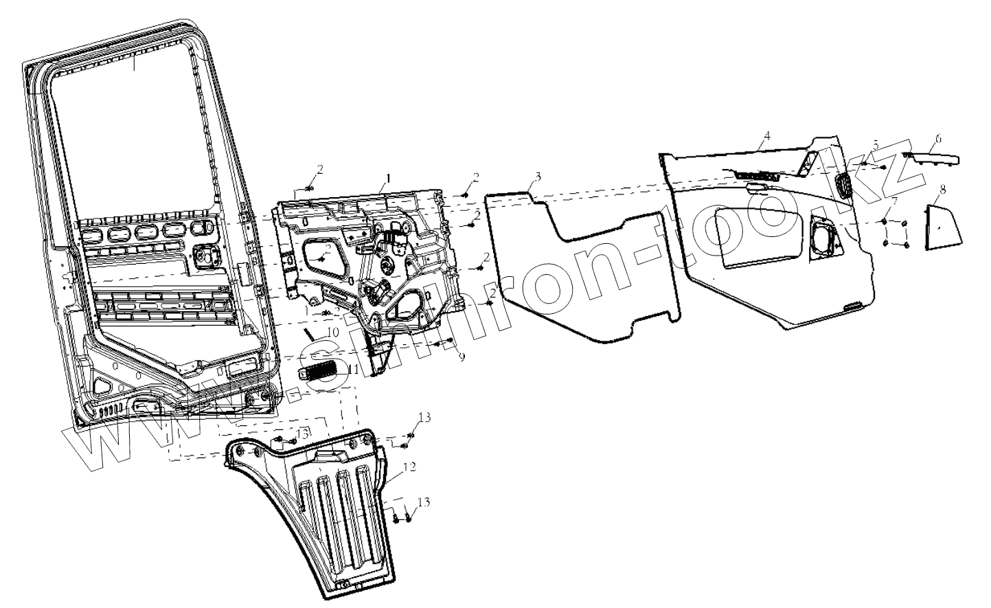 Каталог запасных частей к технике: Shaanxi Shacman SX42584V384TL. DOOR COVERING LEFT (ELECTROMOTION)