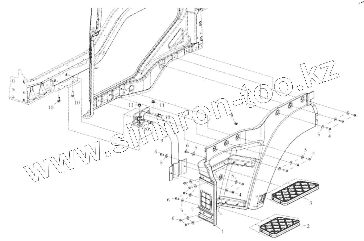 Каталог запасных частей к технике: Shaanxi Shacman SX42584V384TL. LEFT FOOT PANEL FOR CAB