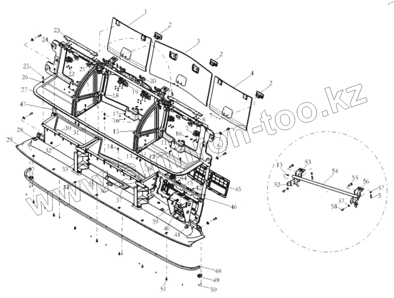 Каталог запасных частей к технике: Shaanxi Shacman SX42584V384TL. THE INTERIOR TRIM ASSEMBLY