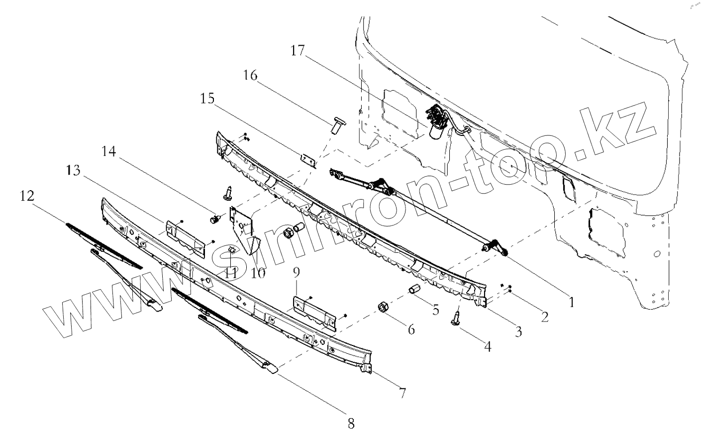 Каталог запасных частей к технике: Shaanxi Shacman SX42584V384TL. WINDSCREEN RINSE SYSTEM/LEFT