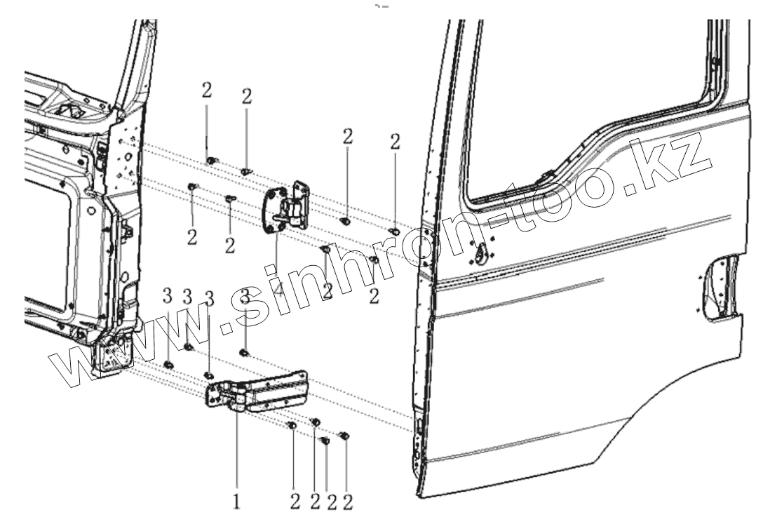 Каталог запасных частей к технике: Shaanxi Shacman SX5256GJBMR364. LEFT DOOR HINGE