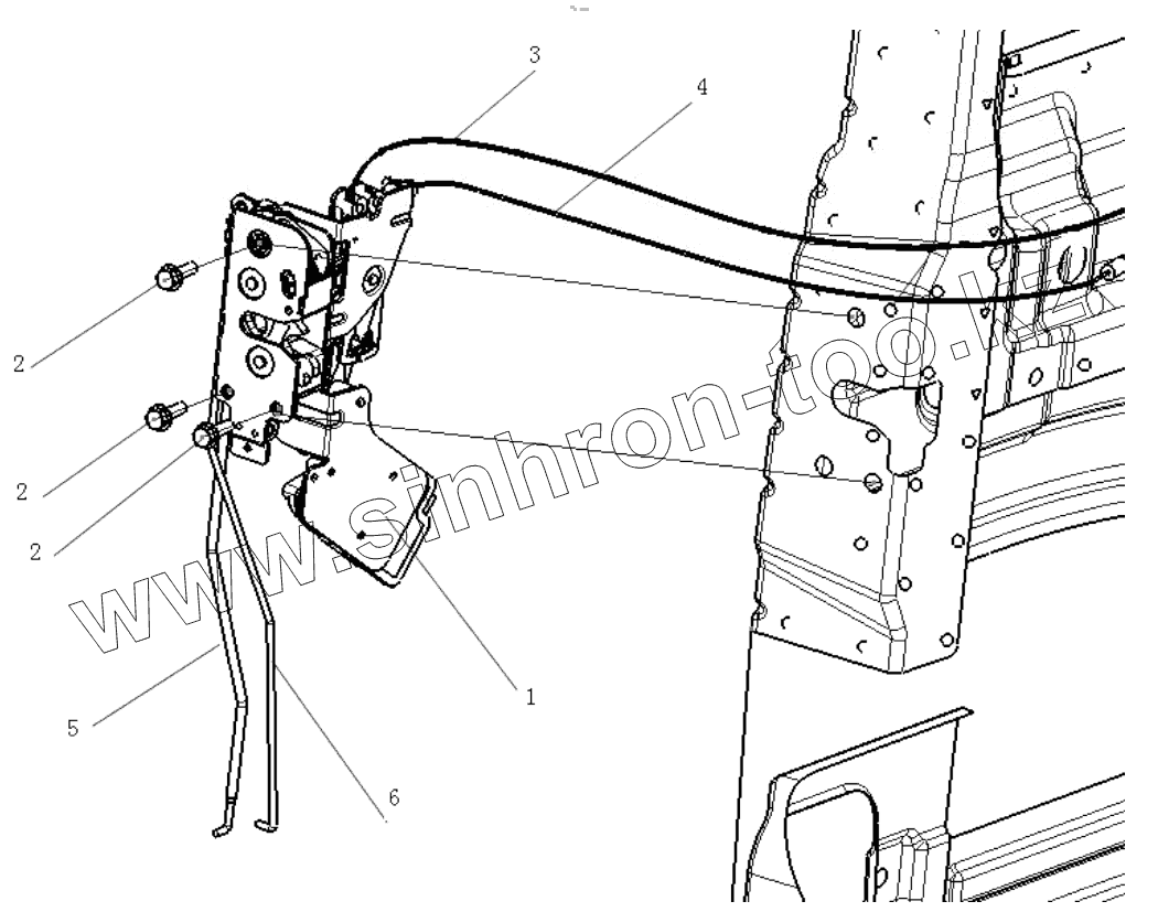 Каталог запасных частей к технике: Shaanxi Shacman SX5256GJBMR364. LEFT DOOR LOCK SYSTEM