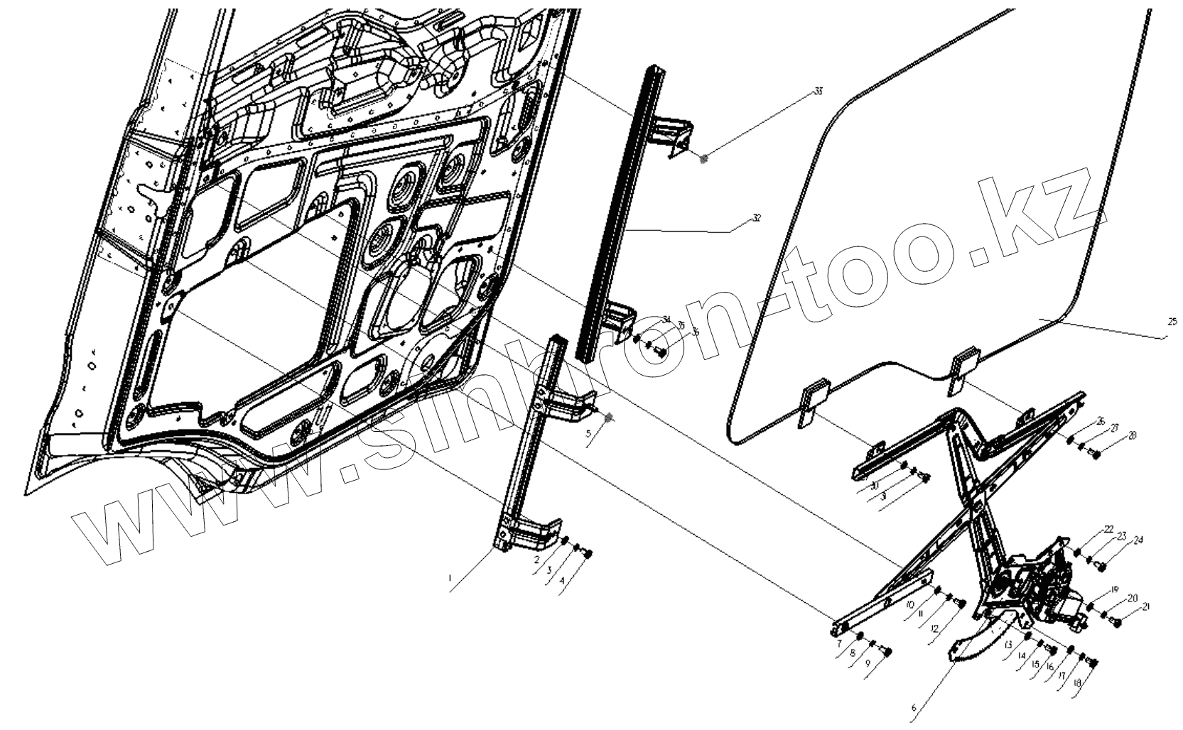 Каталог запасных частей к технике: Shaanxi Shacman SX5256GJBMR364. LEFT DOOR WINDOW LIFTER ASSEMBLY