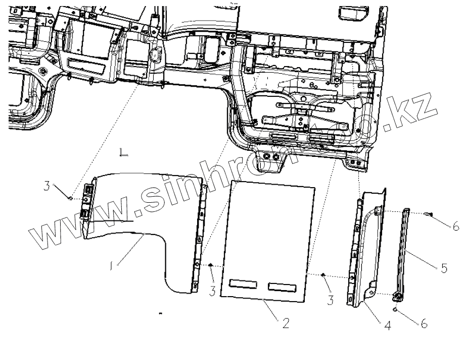 Каталог запасных частей к технике: Shaanxi Shacman SX5256GJBMR364. PASSENGER KNEE BOLSTER ASSY