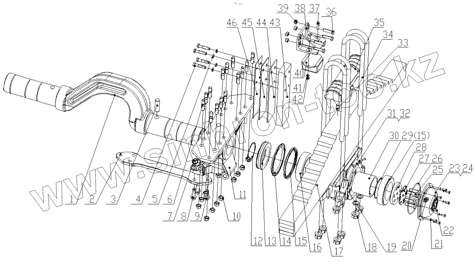 Каталог запасных частей к технике: Shaanxi Shacman SX5256GJBMR364. REAR SUSPENSION I (DC95319520801)