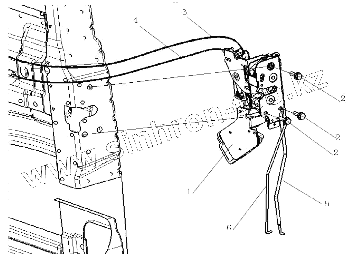 Каталог запасных частей к технике: Shaanxi Shacman SX5256GJBMR364. RIGHT DOOR LOCK SYSTEM