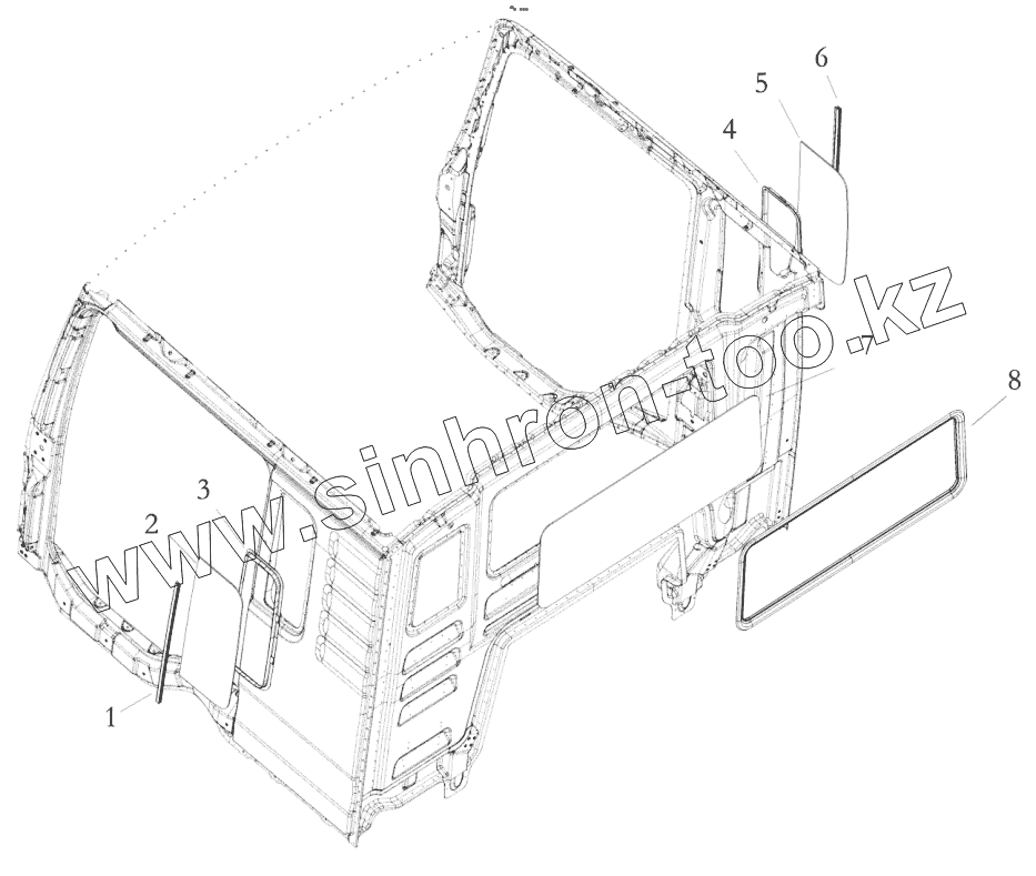 Каталог запасных частей к технике: Shaanxi Shacman SX5256GJBMR364. SIDE-WINDOW AND REAR-WINDOW