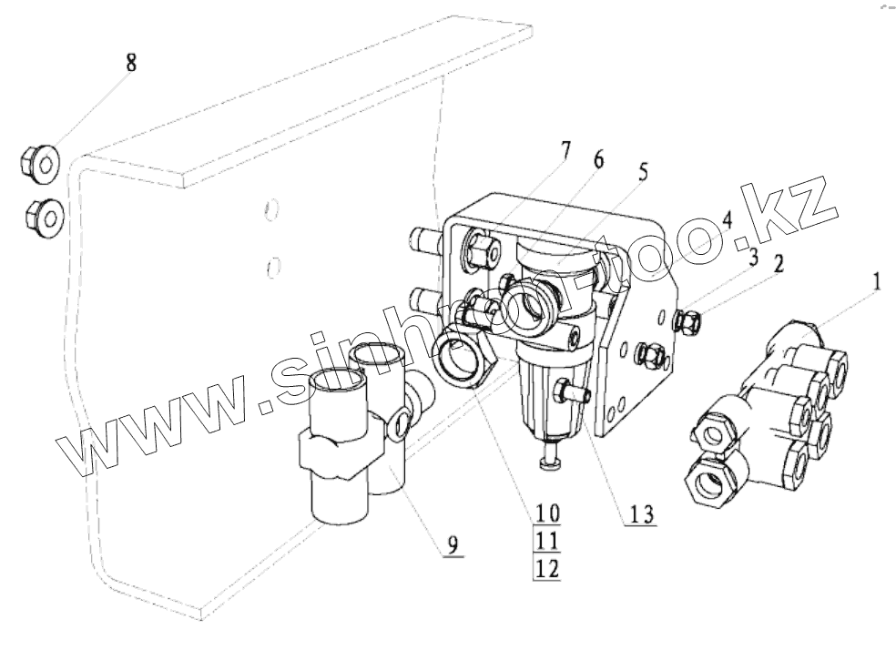 Каталог запасных частей к технике: Shaanxi Shacman SX5318GJBDT386TL. DISTRIBUTION FITTING ASSEMBLE