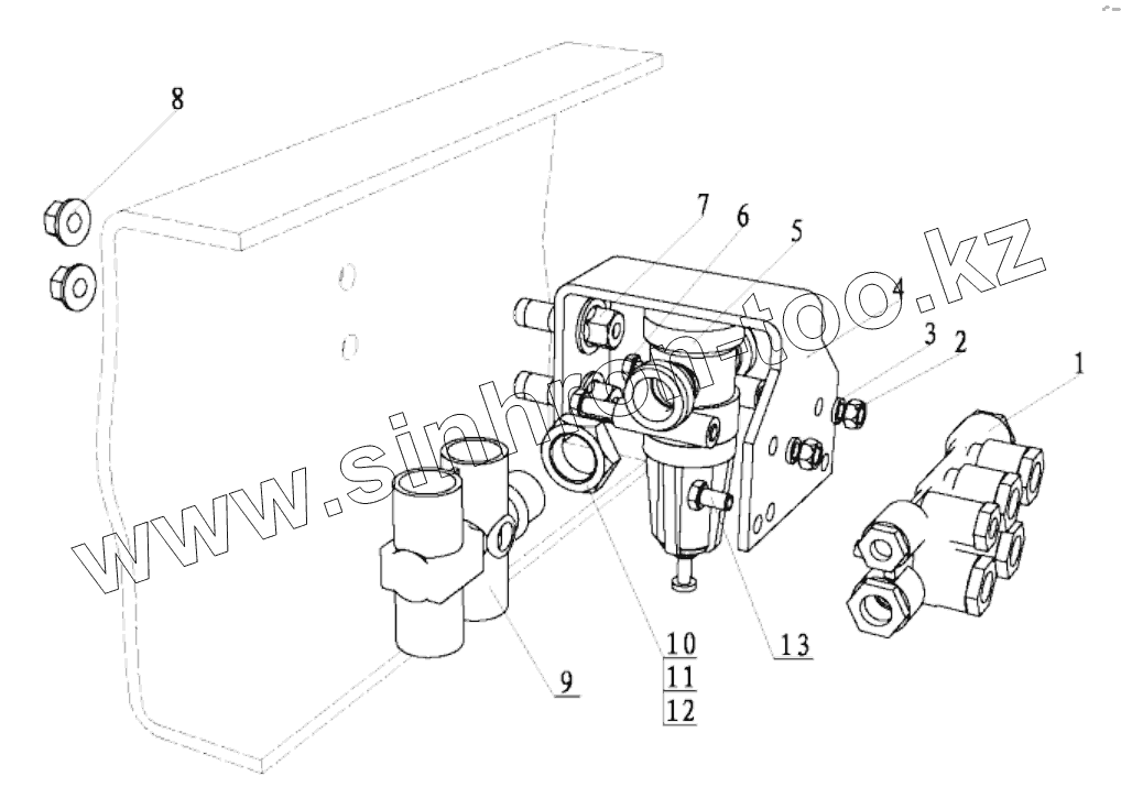 Каталог запасных частей к технике: Shaanxi Shacman SX5318GJBDT386TL. DISTRIBUTION FITTING ASSEMBLE