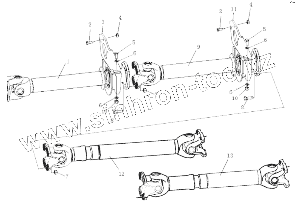 Каталог запасных частей к технике: Shaanxi Shacman SX5318GJBDT386TL. PROPELLER SHAFT SYSTEM