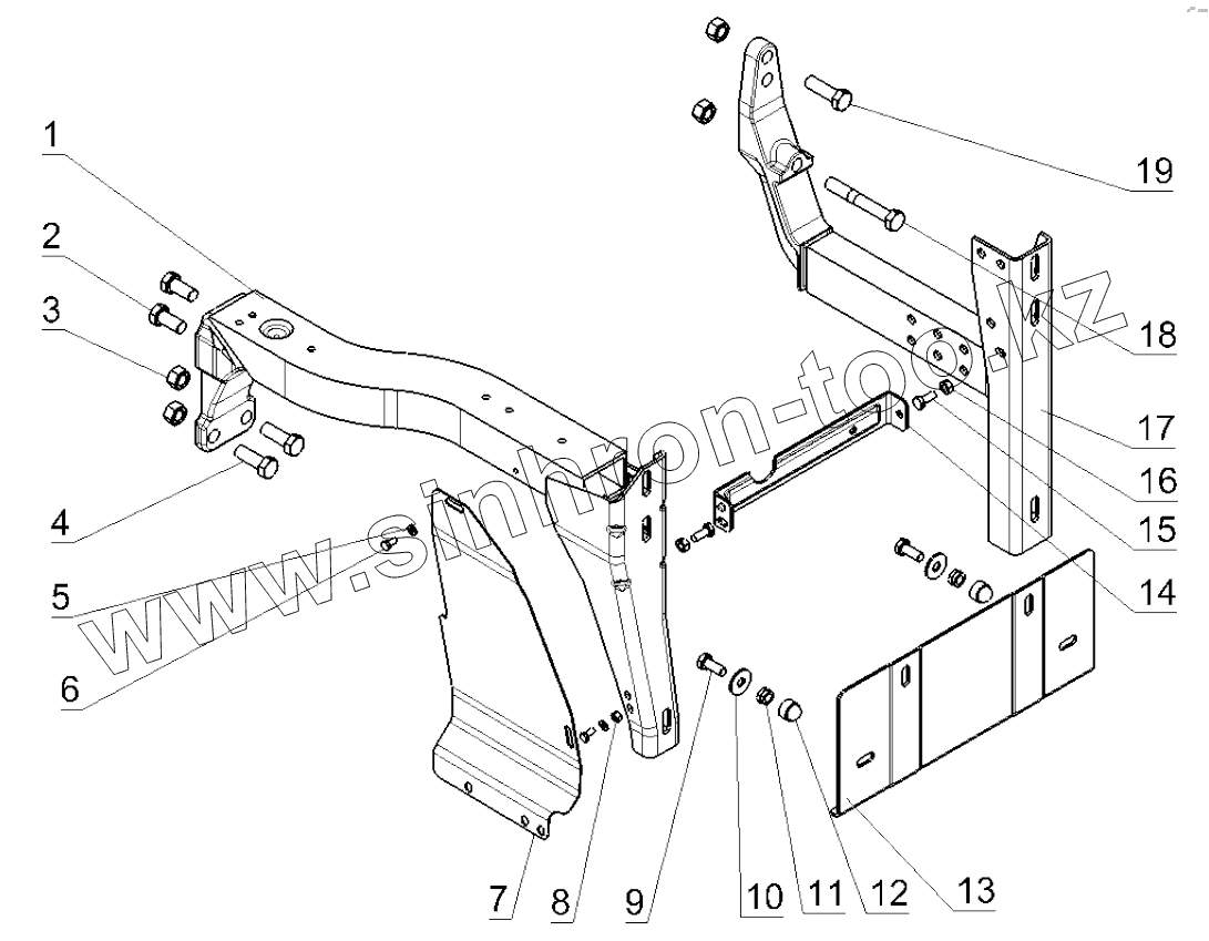 Каталог запасных частей к технике: Shaanxi Shacman SX5318GJBDT386TL. RIGHT FOOT PANEL BRACKET