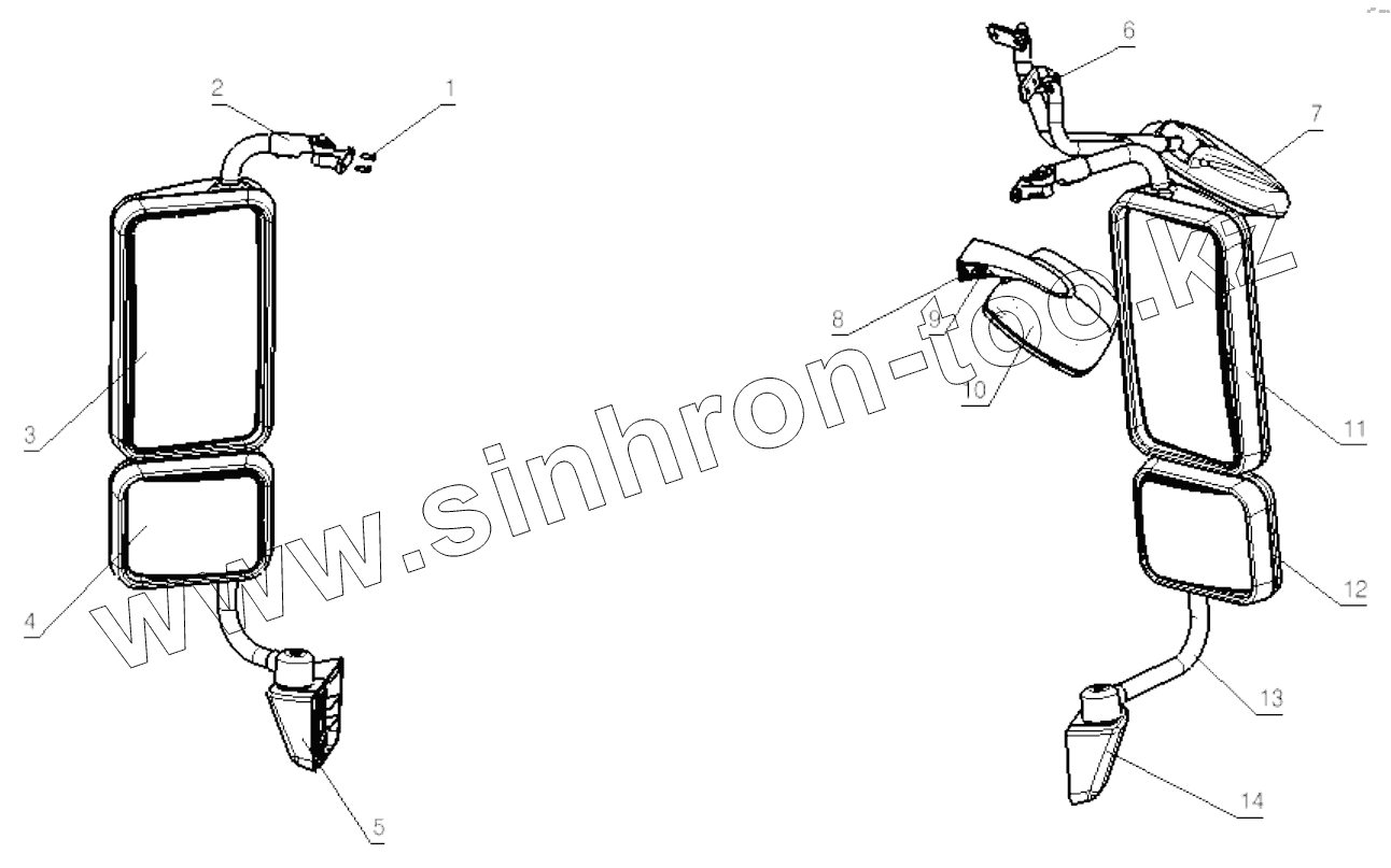 Каталог запасных частей к технике: Shaanxi Shacman SX5318GJBDT386TL. VIEW MIRROR