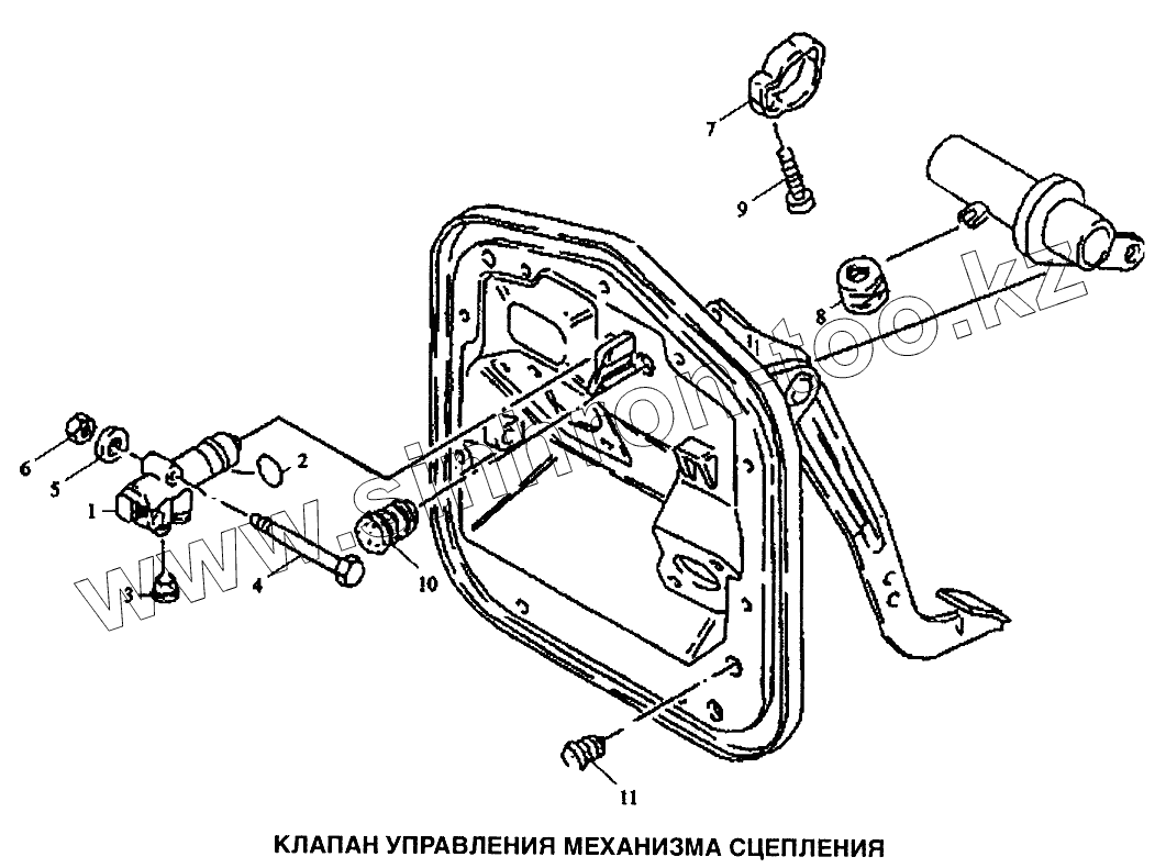 Каталог запасных частей к технике: Shaanxi SX-3255-DR 3804B 6х4. Клапан управления механизма сцепления