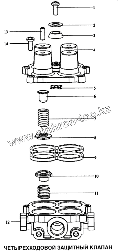 Каталог запасных частей к технике: Shaanxi SX-3255-DR 3804B 6х4. Клапан защитный четырехходовой