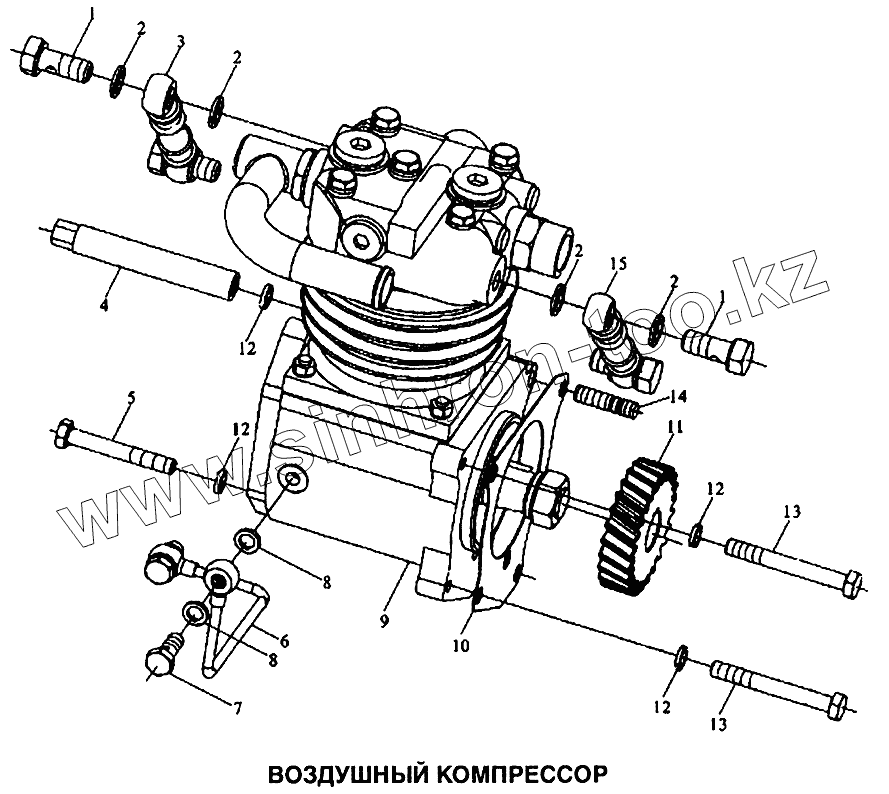 Каталог запасных частей к технике: Shaanxi SX-3255-DR 3804B 6х4. Компрессор воздушный
