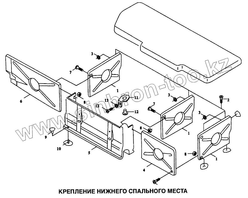 Каталог запасных частей к технике: Shaanxi SX-3255-DR 3804B 6х4. Крепление нижнего спального места