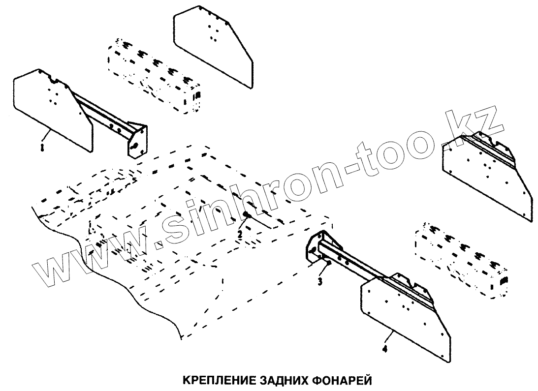 Каталог запасных частей к технике: Shaanxi SX-3255-DR 3804B 6х4. Крепление задних фонарей