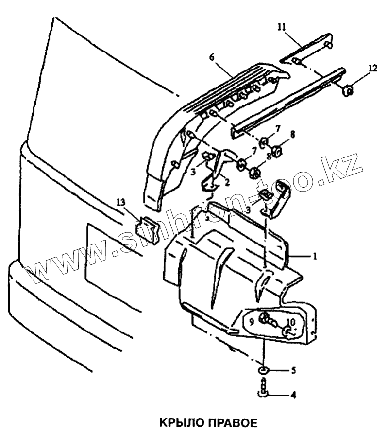 Каталог запасных частей к технике: Shaanxi SX-3255-DR 3804B 6х4. Крыло правое