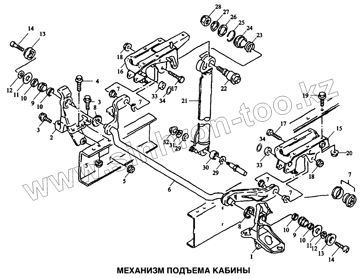 Каталог запасных частей к технике: Shaanxi SX-3255-DR 3804B 6х4. Механизм подъема кабины