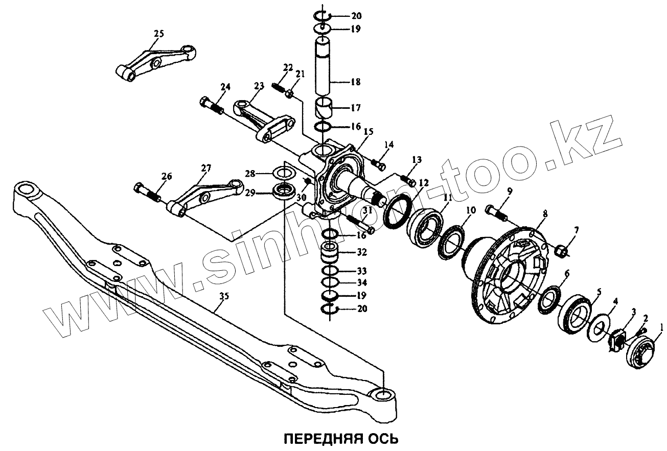Каталог запасных частей к технике: Shaanxi SX-3255-DR 3804B 6х4. Ось передняя