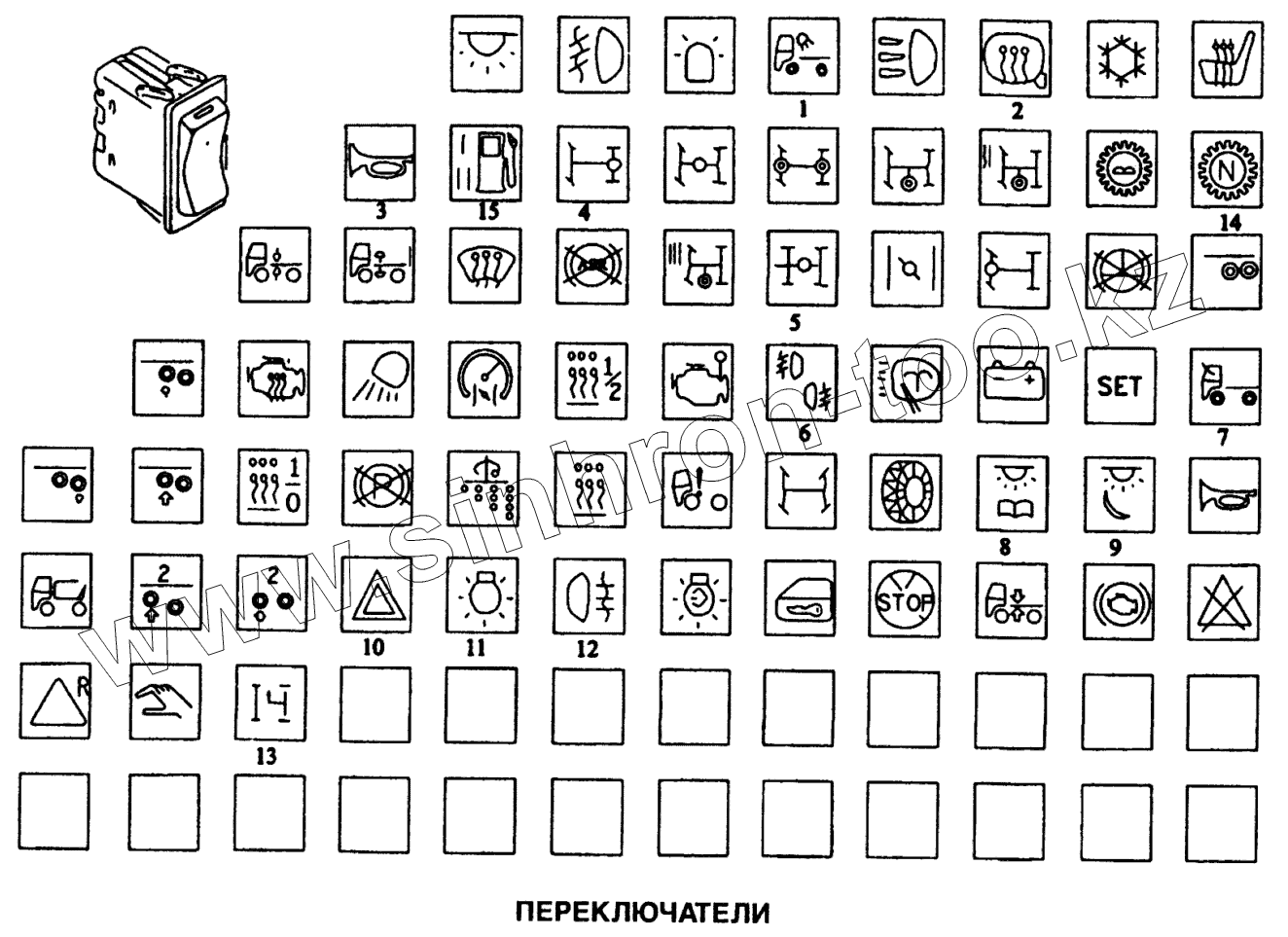 Каталог запасных частей к технике: Shaanxi SX-3255-DR 3804B 6х4. Переключатели
