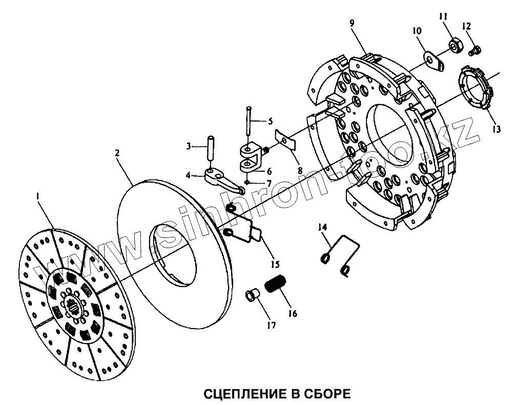 Каталог запасных частей к технике: Shaanxi SX-3255-DR 3804B 6х4. Сцепление в сборе