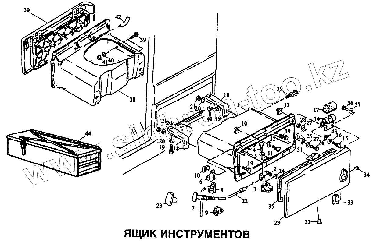 Каталог запасных частей к технике: Shaanxi SX-3255-DR 3804B 6х4. Ящик инструментов