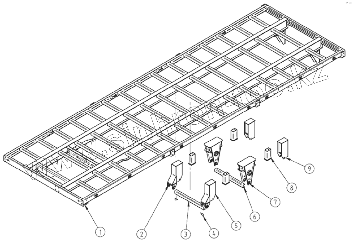 Каталог запасных частей к технике: Ставропольский Завод АвтоПрицепов СЗАП-8305. Рама прицепа