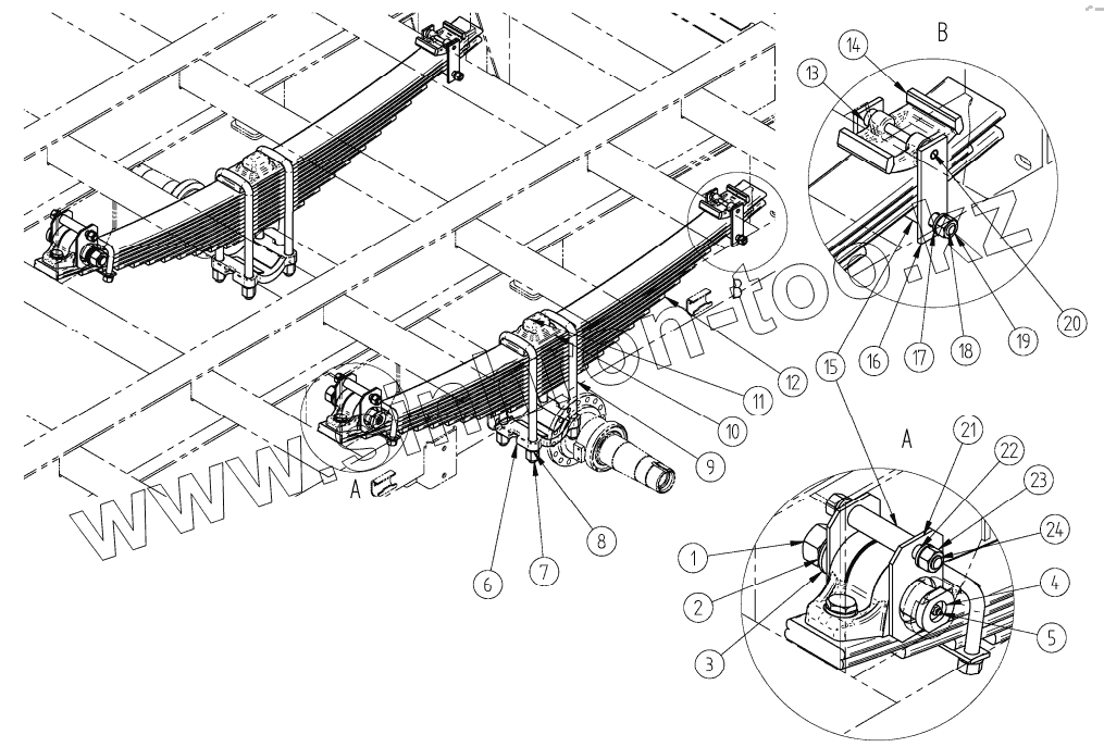 Каталог запасных частей к технике: Ставропольский Завод АвтоПрицепов СЗАП-8357. Задняя подвеска 8357-02