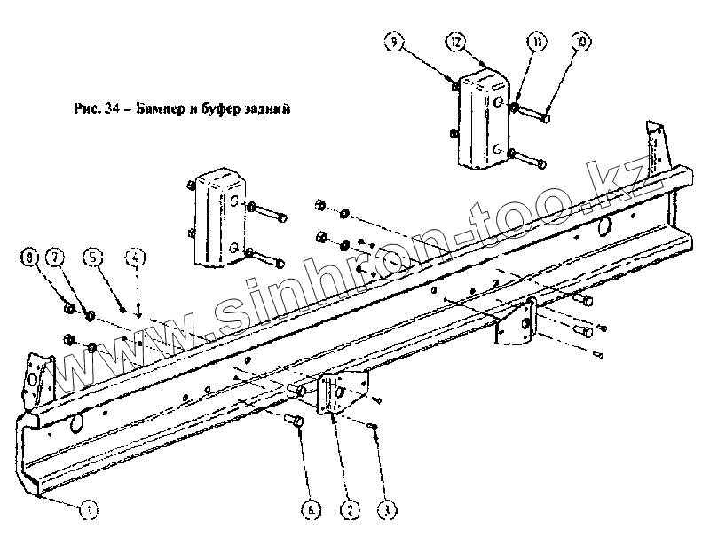 Каталог запасных частей к технике: Ставропольский Завод АвтоПрицепов СЗАП-93271. Бампер и буфер задний