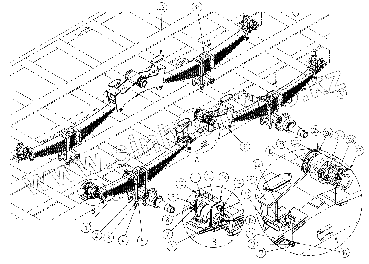 Каталог запасных частей к технике: Ставропольский Завод АвтоПрицепов СЗАП-93271 (2005). Подвеска