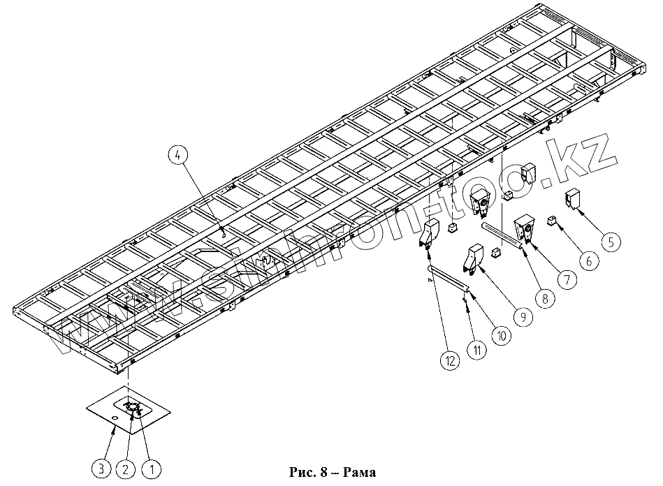 Каталог запасных частей к технике: Ставропольский Завод АвтоПрицепов СЗАП-9327. Устройство опорное левое
