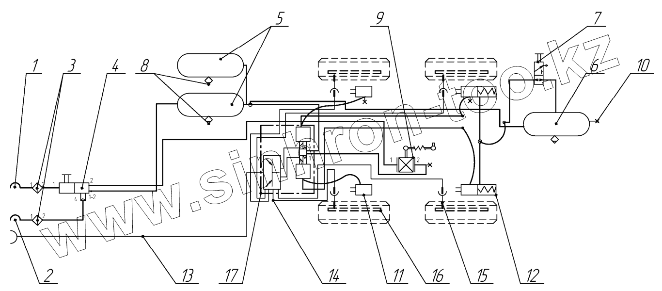 Каталог запасных частей к технике: Ставропольский Завод АвтоПрицепов СЗАП-9905. Пневмопривод тормозов с АБС