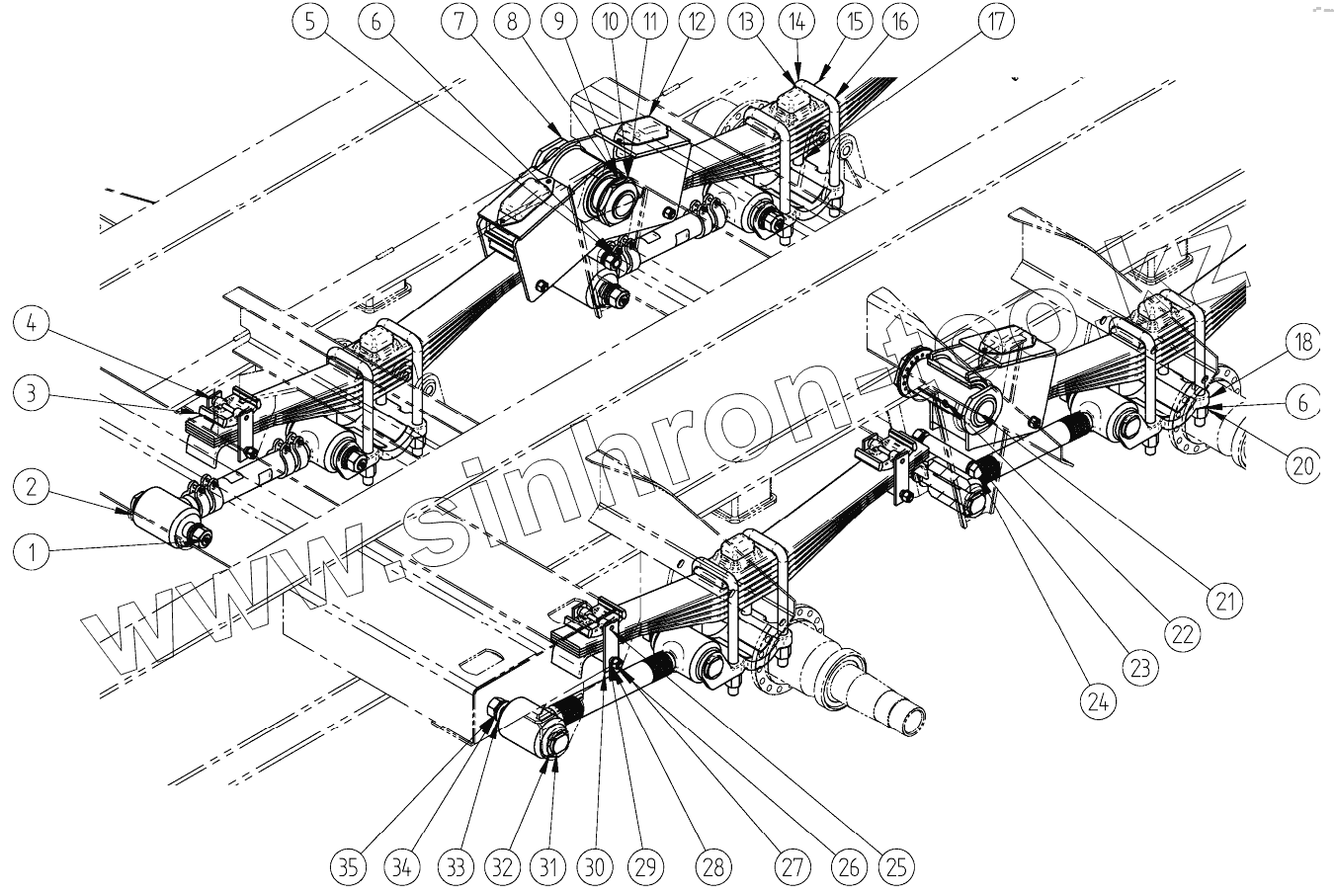 Каталог запасных частей к технике: Ставропольский Завод АвтоПрицепов СЗАП-9915. Подвеска рессорная балансирная