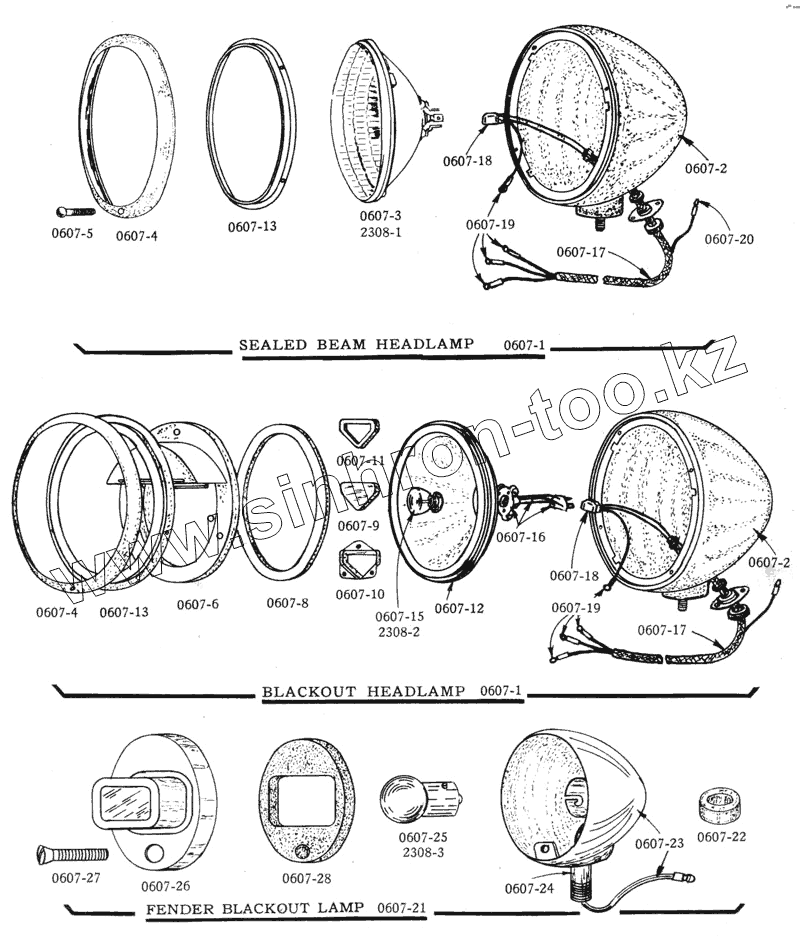 Каталог запасных частей к технике: Studebaker US6x6. Фонари передние/Head and Fender Lamps