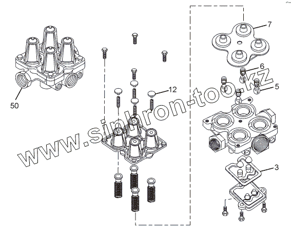 Каталог запасных частей к технике: Tata LPT 613 LHD EURO II. QUADRUPLE SYSTEM PROTECTION VALVE