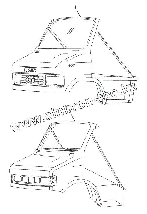 Каталог запасных частей к технике: Tata SFC 407 LHD Euro II. ASSY COWL COMPLETE357173