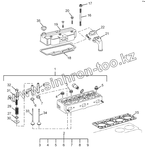 Каталог запасных частей к технике: Tata SFC 407 LHD Euro II. CYLINDER HEAD AND COVER