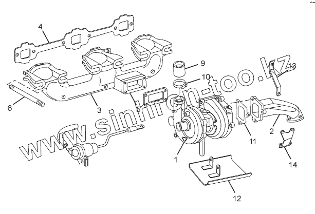 Каталог запасных частей к технике: Tata SFC 407 LHD Euro II. EXHAUST MANIFOLD AND TURBOCHARGER