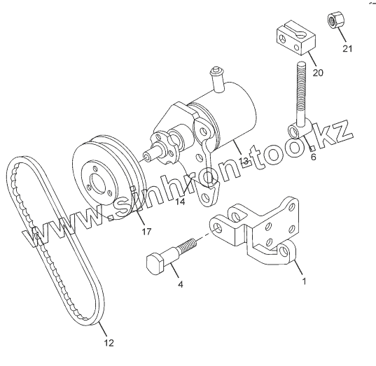 Каталог запасных частей к технике: Tata SFC 407 LHD Euro II. POWER STEERING PUMP MOUNTING