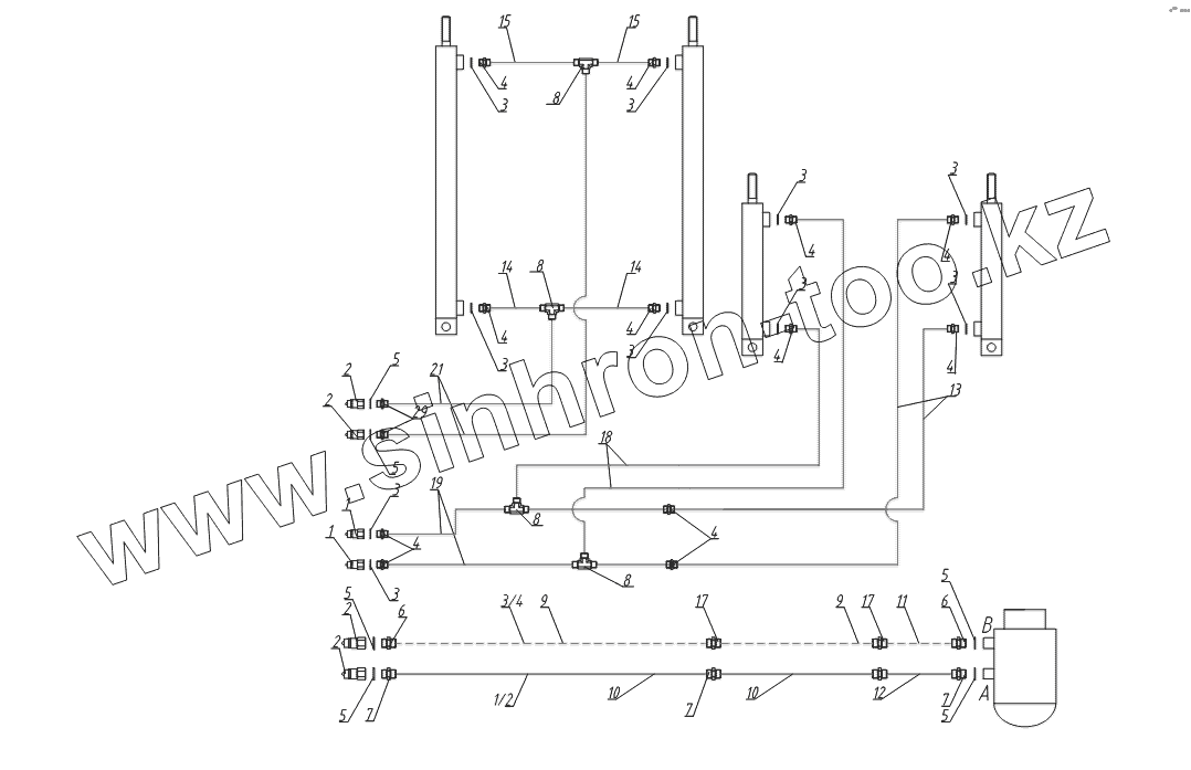 Каталог запасных частей к технике: Тонар ПТ4-30. Схема гидравлическая ВТ1
