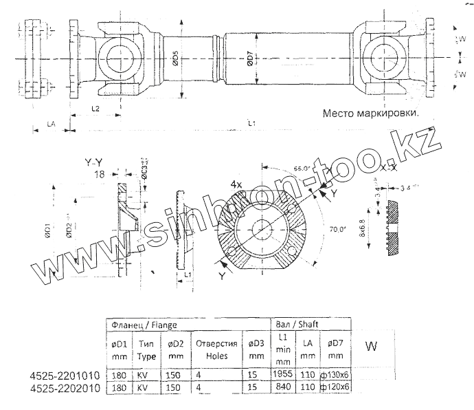 Каталог запасных частей к технике: Тонар-4525. Карданный вал