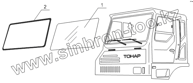 Каталог запасных частей к технике: Тонар-4525. Лобовое стекло